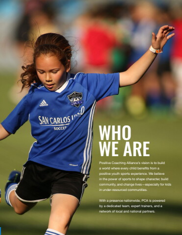 WHO WE AREPositive Coaching Alliance%u2019s vision is to build a world where every child benefits from a positive youth sports experience. We believe in the power of sports to shape character, build community, and change lives%u2014especially for kids in under-resourced communities. With a presence nationwide, PCA is powered by a dedicated team, expert trainers, and a network of local and national partners.