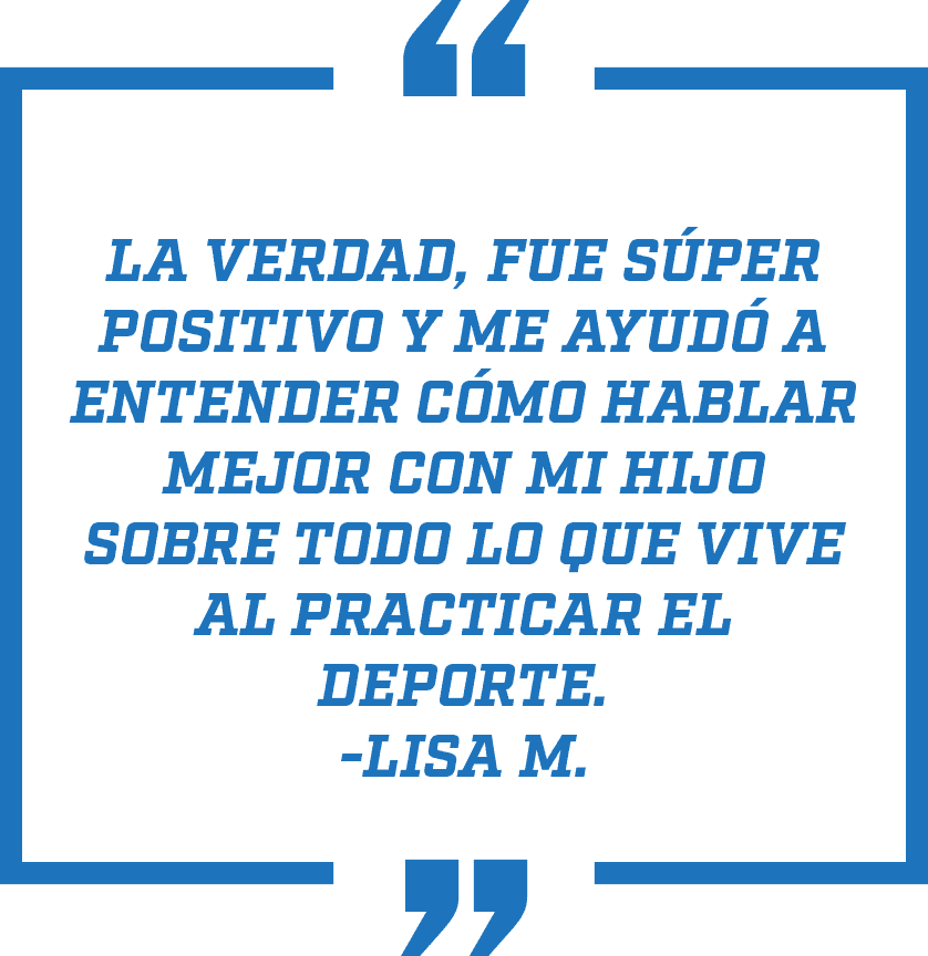 Las familias expresan su apoyo de diversas maneras. Considera preguntarle a tu hijo qué tipo de apoyo le ayuda más durante los partidos, así podrás alinear tu ayuda con su experiencia.
